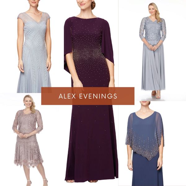 It’s all about the fabric! Alex Evenings dresses feature innovative materials that stretch and move with your body to make you look great in all the right places.